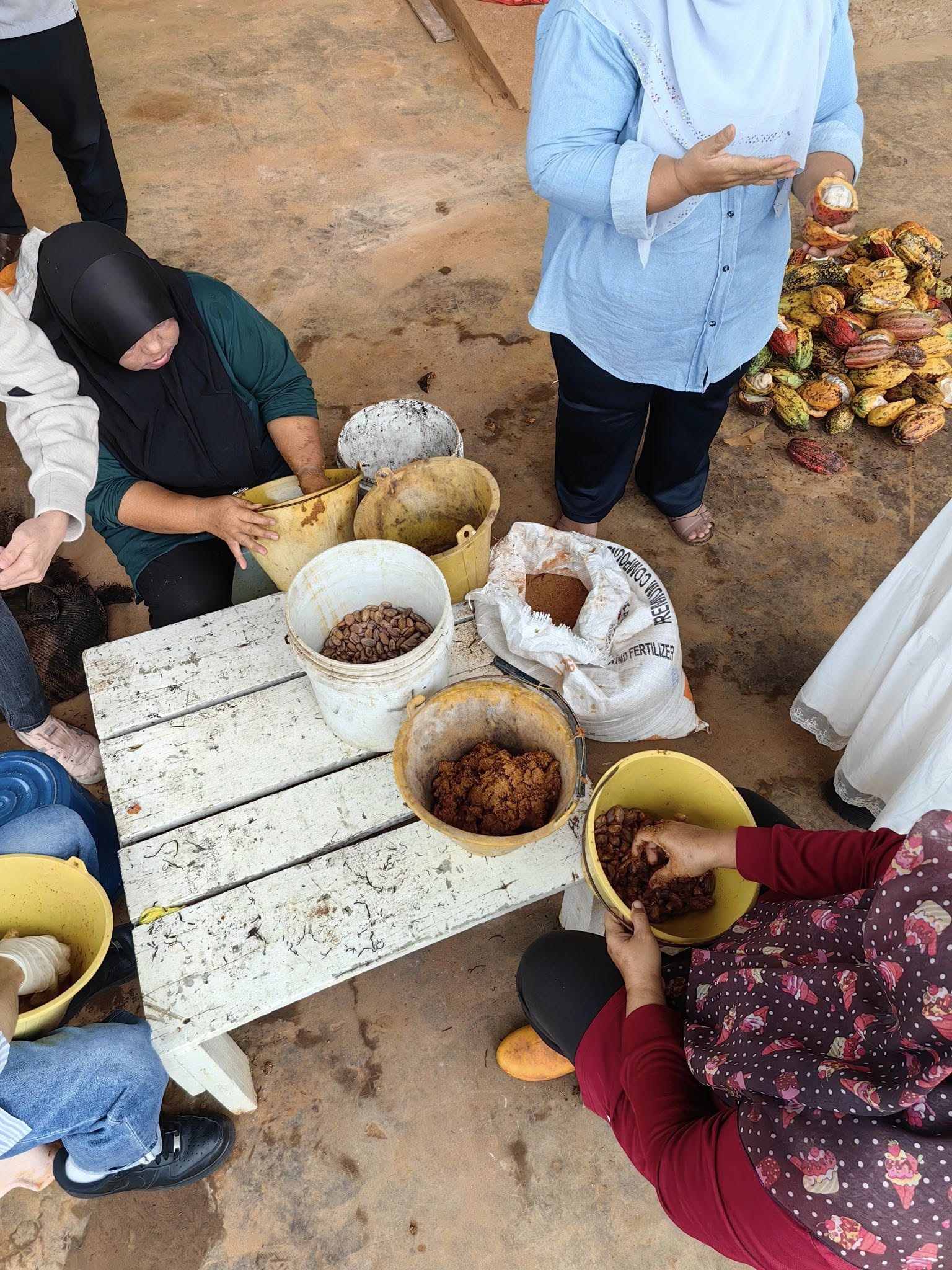 Students dove deep into chocolate-making techniques, learned to select premium Malaysian cacao beans, and crafted their own unique recipes. They explored processes from fermentation and drying at Kampung Panchor Cacao Farm to advanced tempering and ganache making back at the factory.